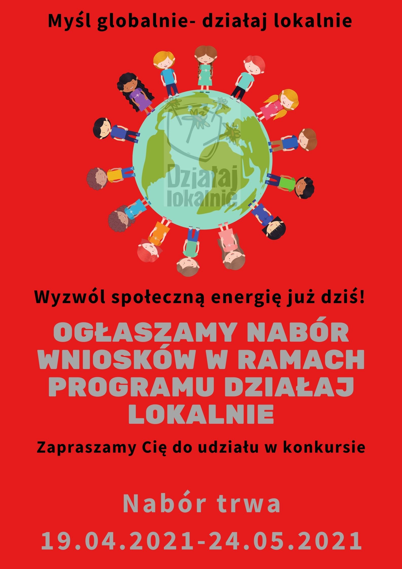 Plakat- ogłoszenie o naborze Regulamin Działaj Lokalnie XII-2021 Wniosek Działaj Lokalnie XII-2021 ( do wglądu)