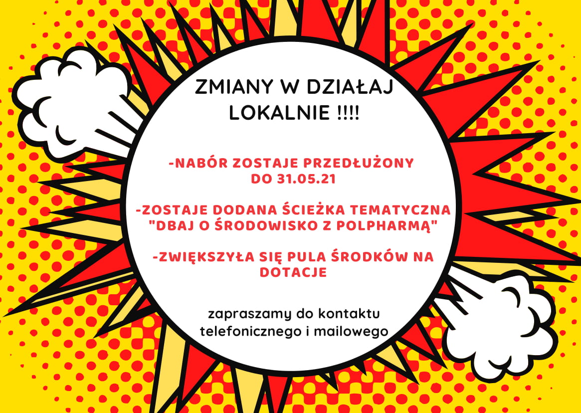 W lokalnym konkursie grantowym w ramach Programu Działaj Lokalnie XII-2021 wprowadzamy kilka zmian. Bardzo prosimy o zapoznanie się ze zmianami.
