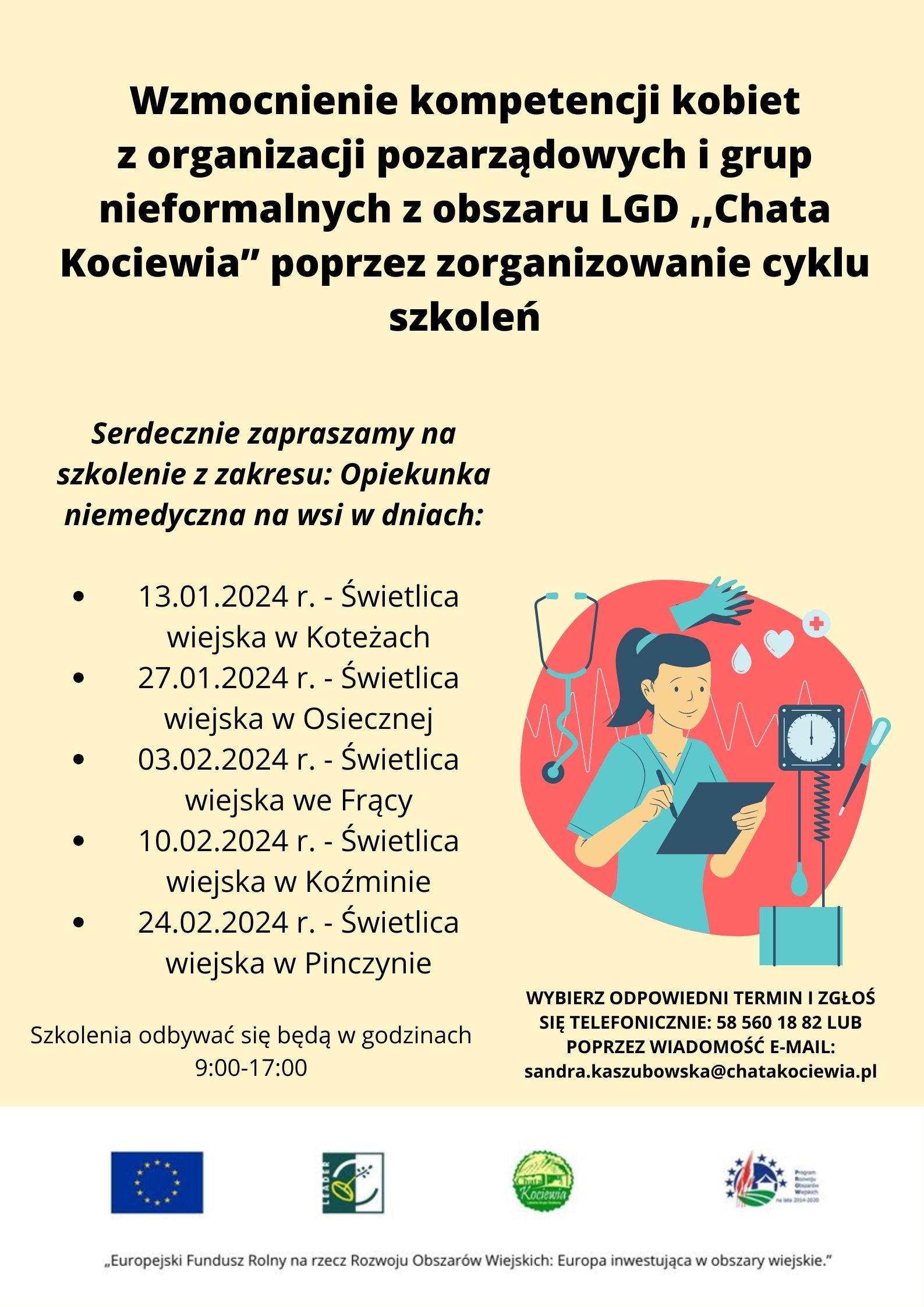 Zapisy telefonicznie: 58 560 18 82 lub poprzez wiadomość e-mail: sandra.kaszubowska@chatakociewia.pl.